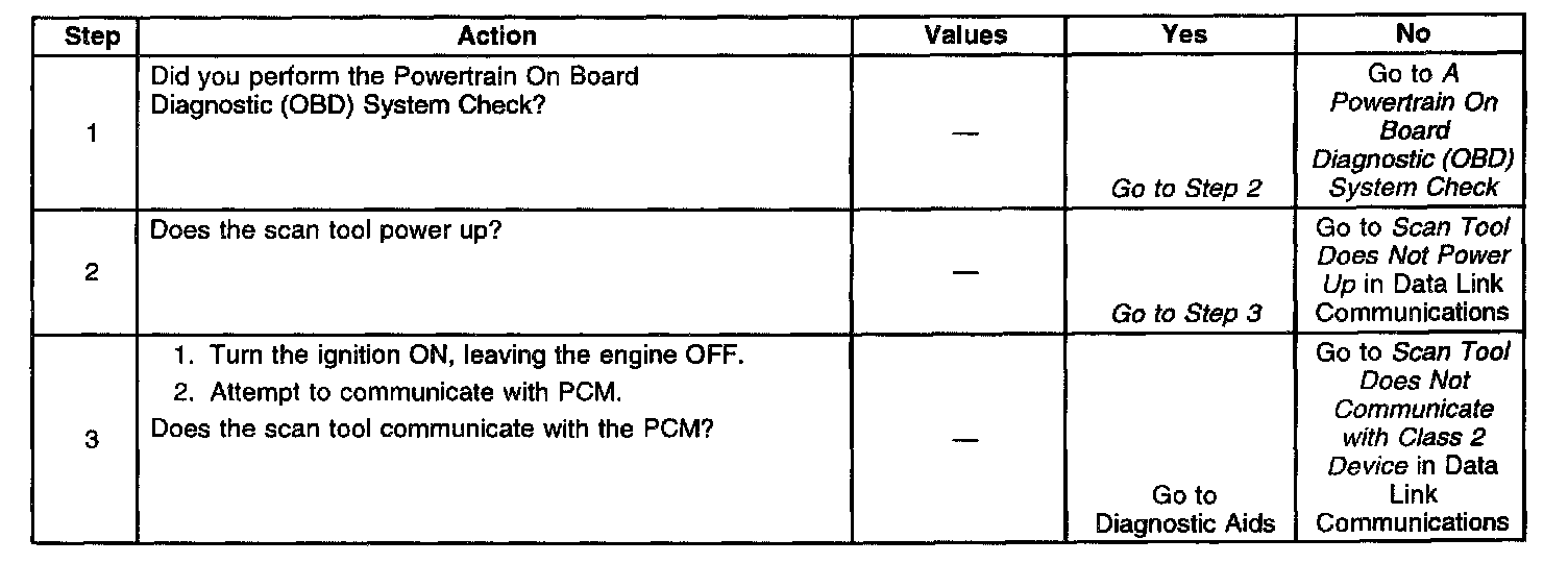 The Class II serial data circuit to the DLC allows bi-directional communication between the PCM and the scan tool. If communication between the scan tool and the PCM cannot be established, the procedure in the DLC Diagnosis table should be used to diagnose the condition.