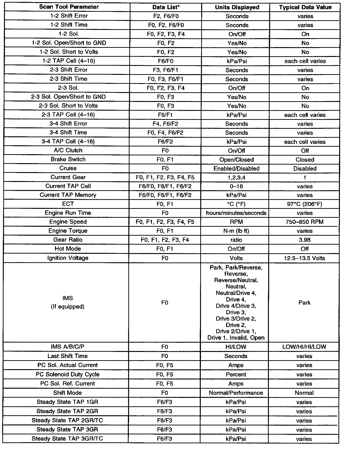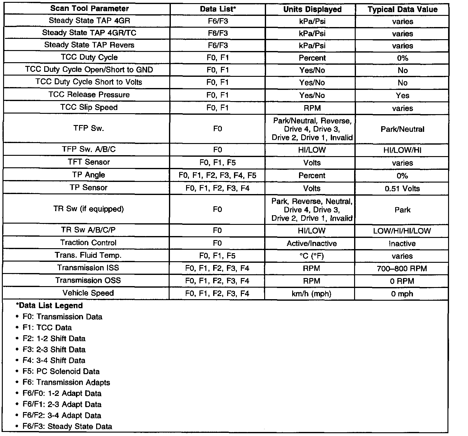 Only the parameters listed are used for diagnosing. If a scan tool displays other parameters, the values are not recommended by General Motors for use in diagnosis.