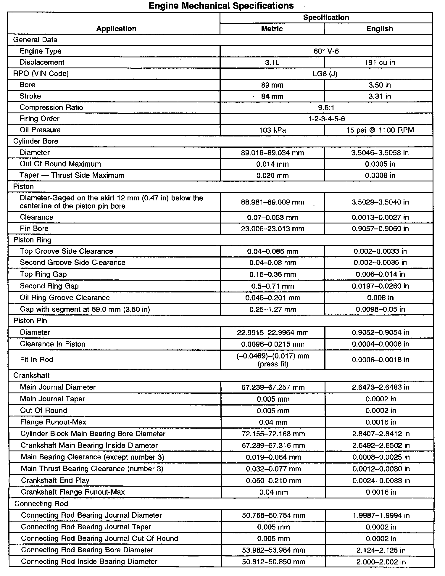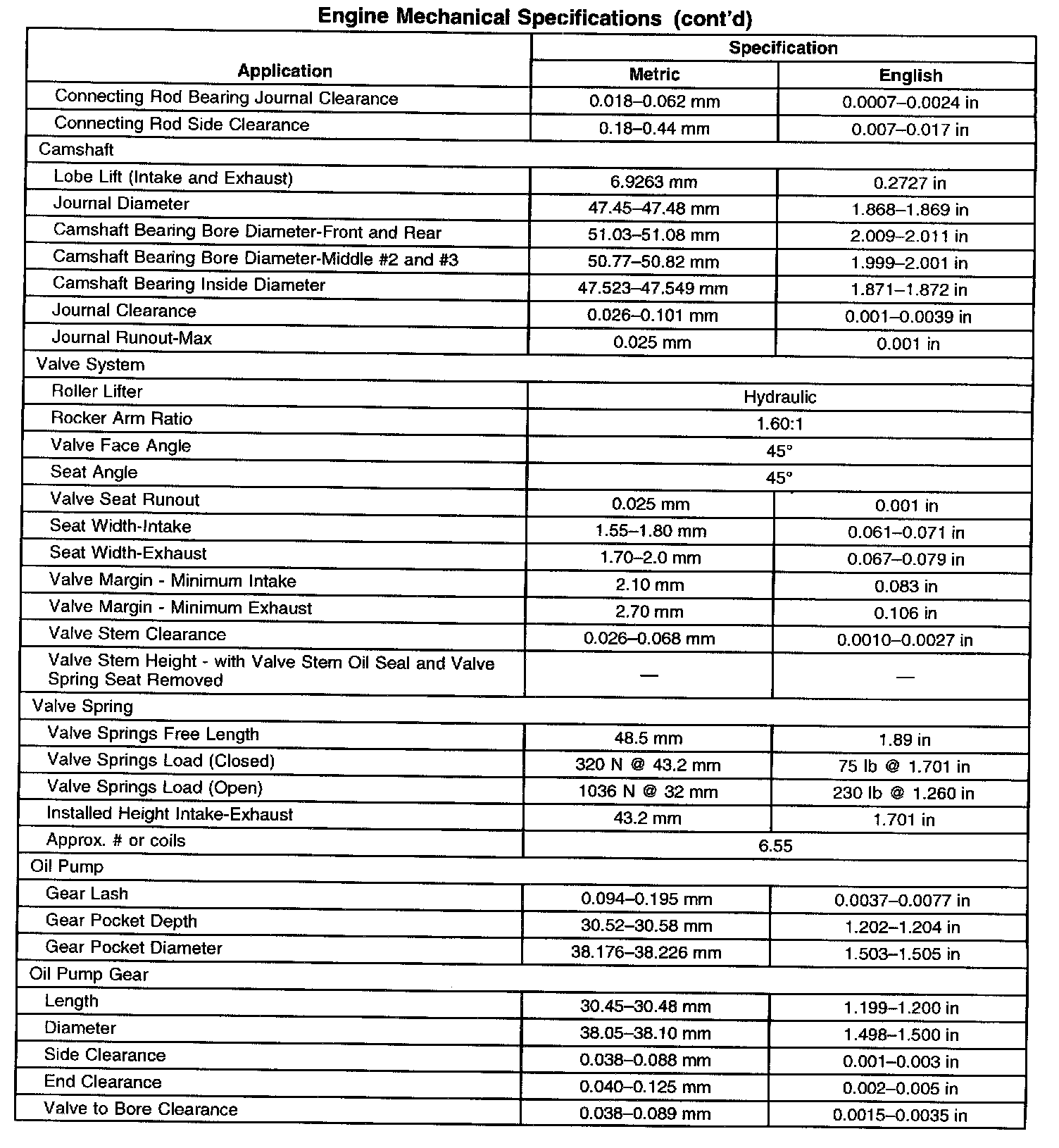 Engine Mechanical Specifications