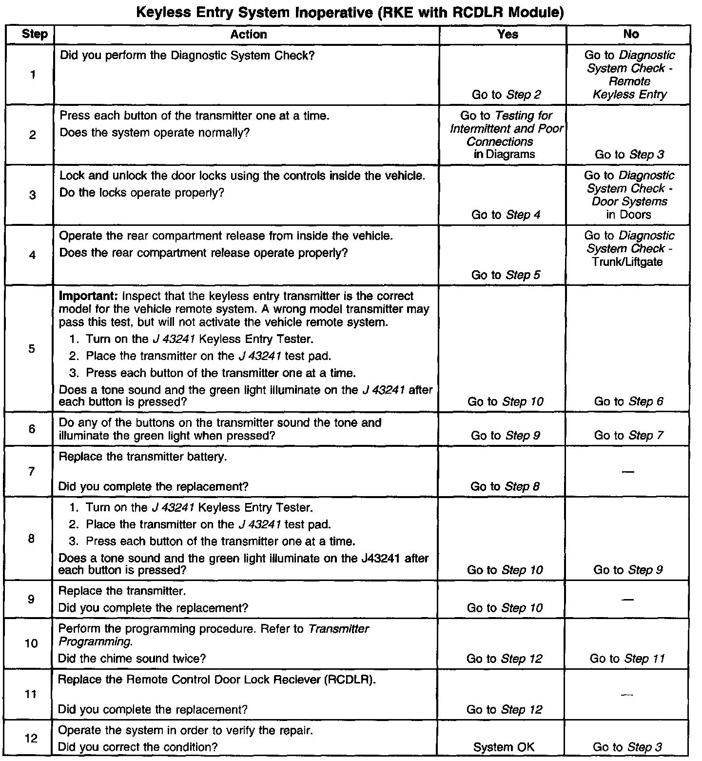Keyless Entry System Inoperative (RKE With RCDLR Module)