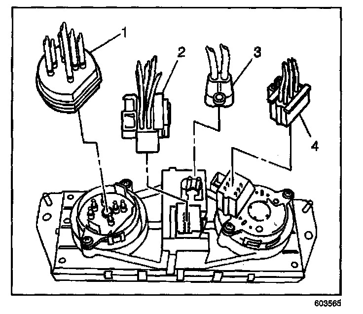 3. Connect the blower motor switch electrical connector (3) from the HVAC control assembly.