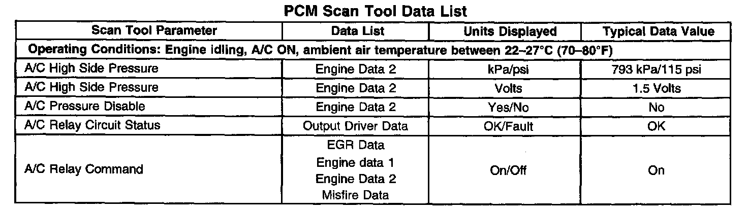 Scan Tool Data List - Powertrain Control Module (PCM)