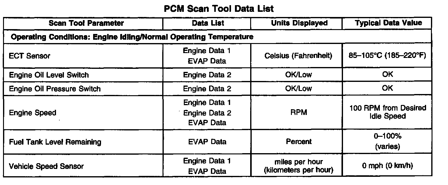 PCM Scan Tool Data List: