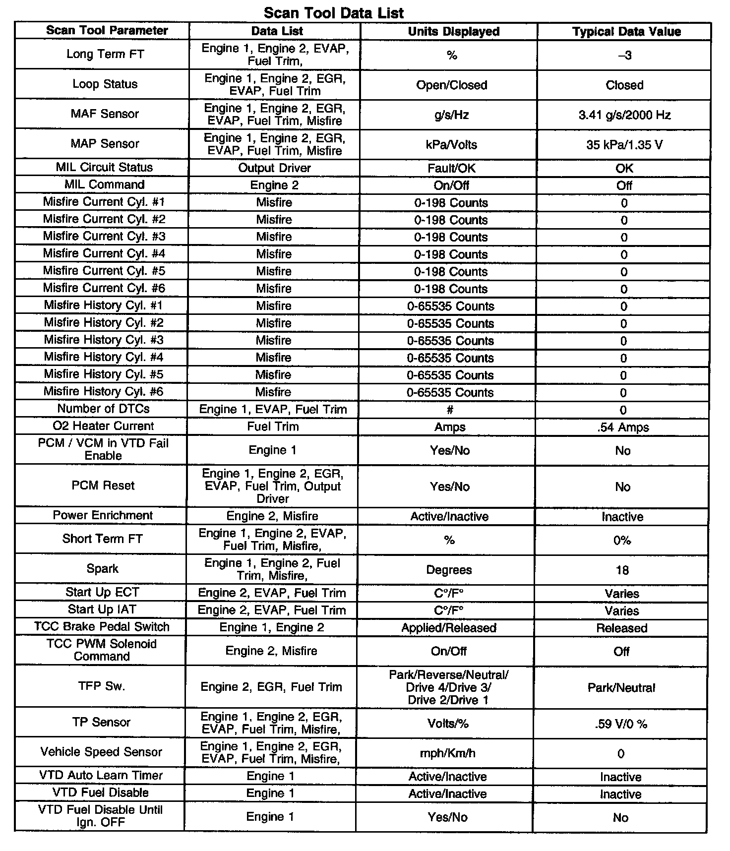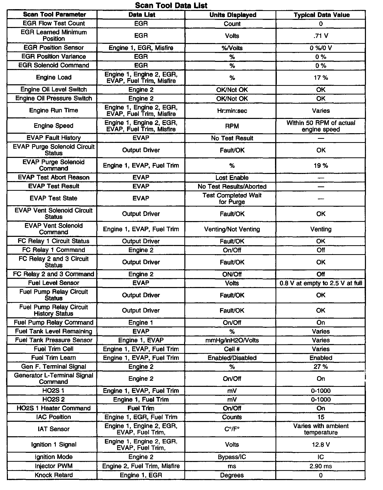 ^ Engine Data 1-Contains general information regarding fuel delivery, IAC position, HO2S 1, HO2S 2, and other basic engine operating conditions.