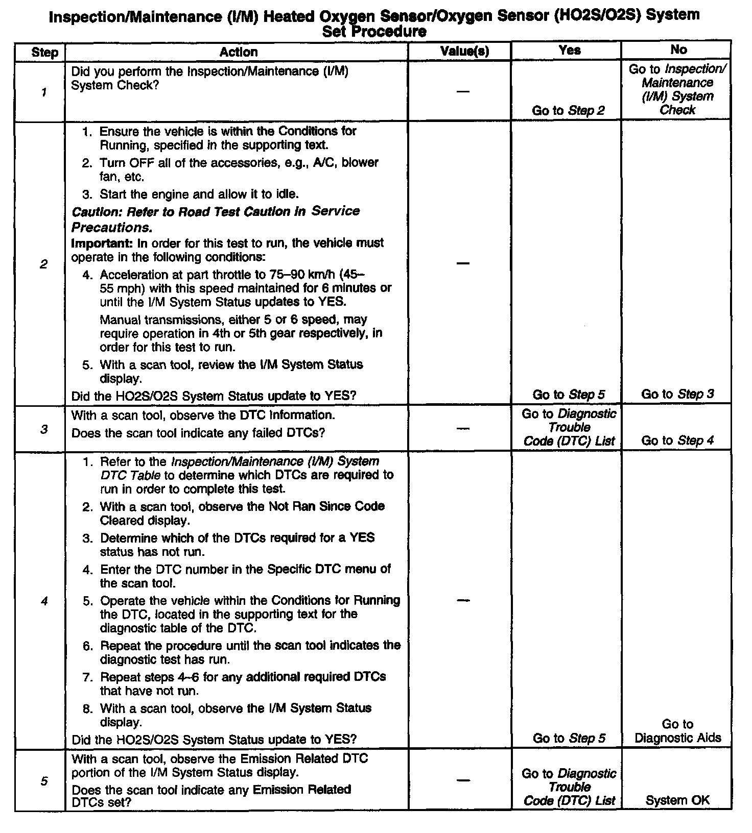 5. The I/M System Status only reports on whether or not a diagnostic has run, not the outcome of the test. If any Emission Related DTC sets after the tests are complete, the DTC will require diagnosis.
