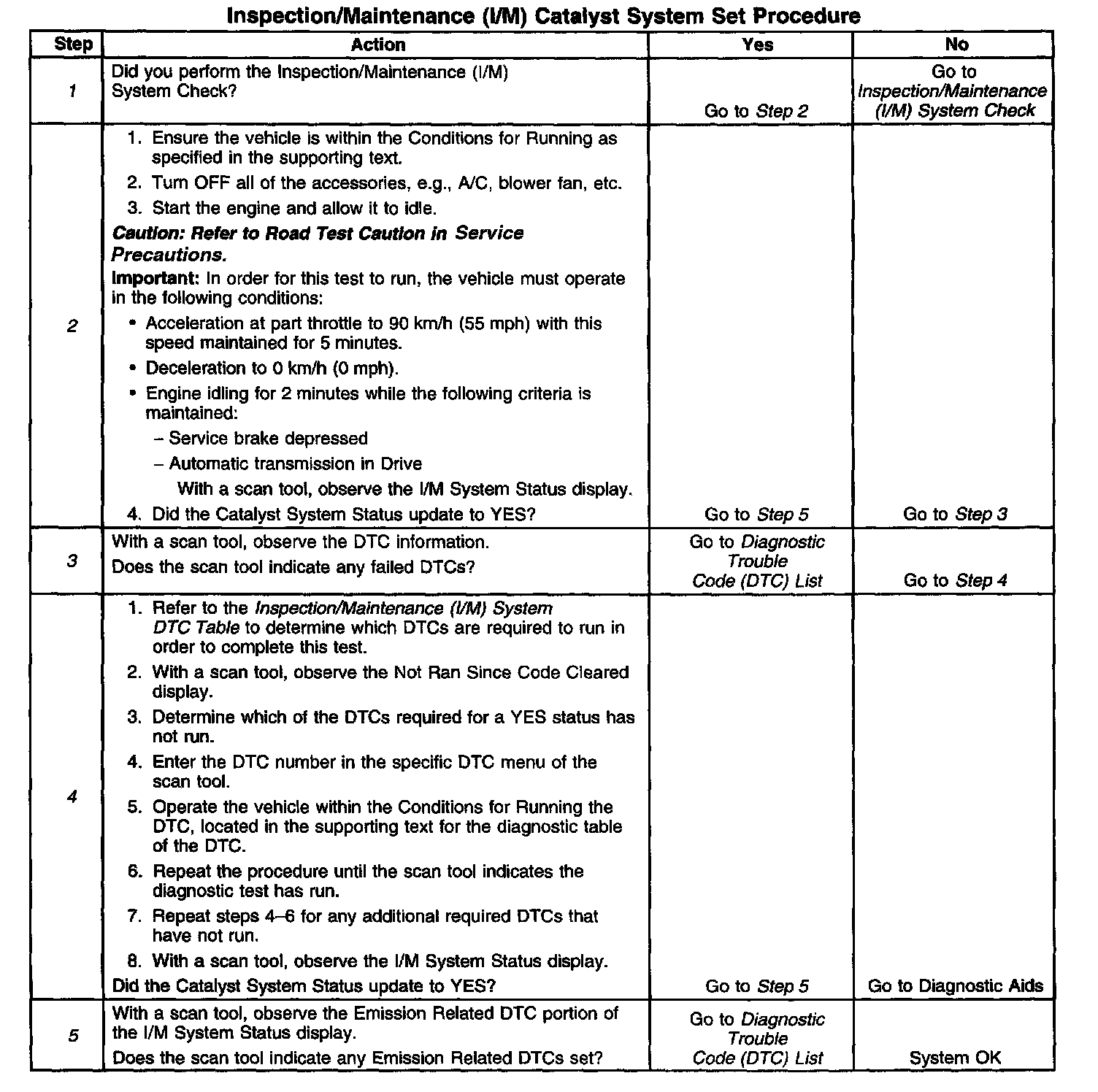 5. The I/M System Status only reports on whether or not a diagnostic has run, not the outcome of the test. If any emission related DTC sets after the tests are complete, the DTC will require diagnosis.