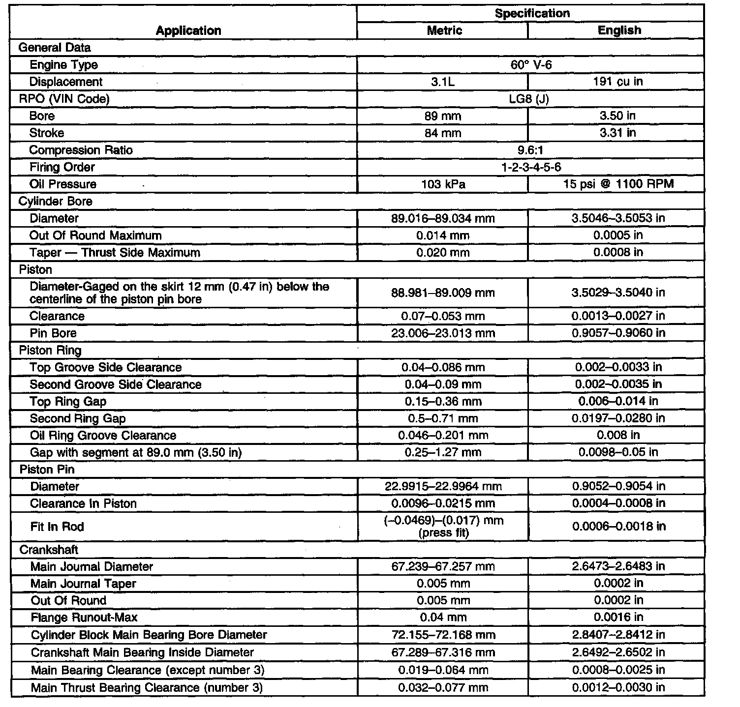 Engine Mechanical Data/Dimensions