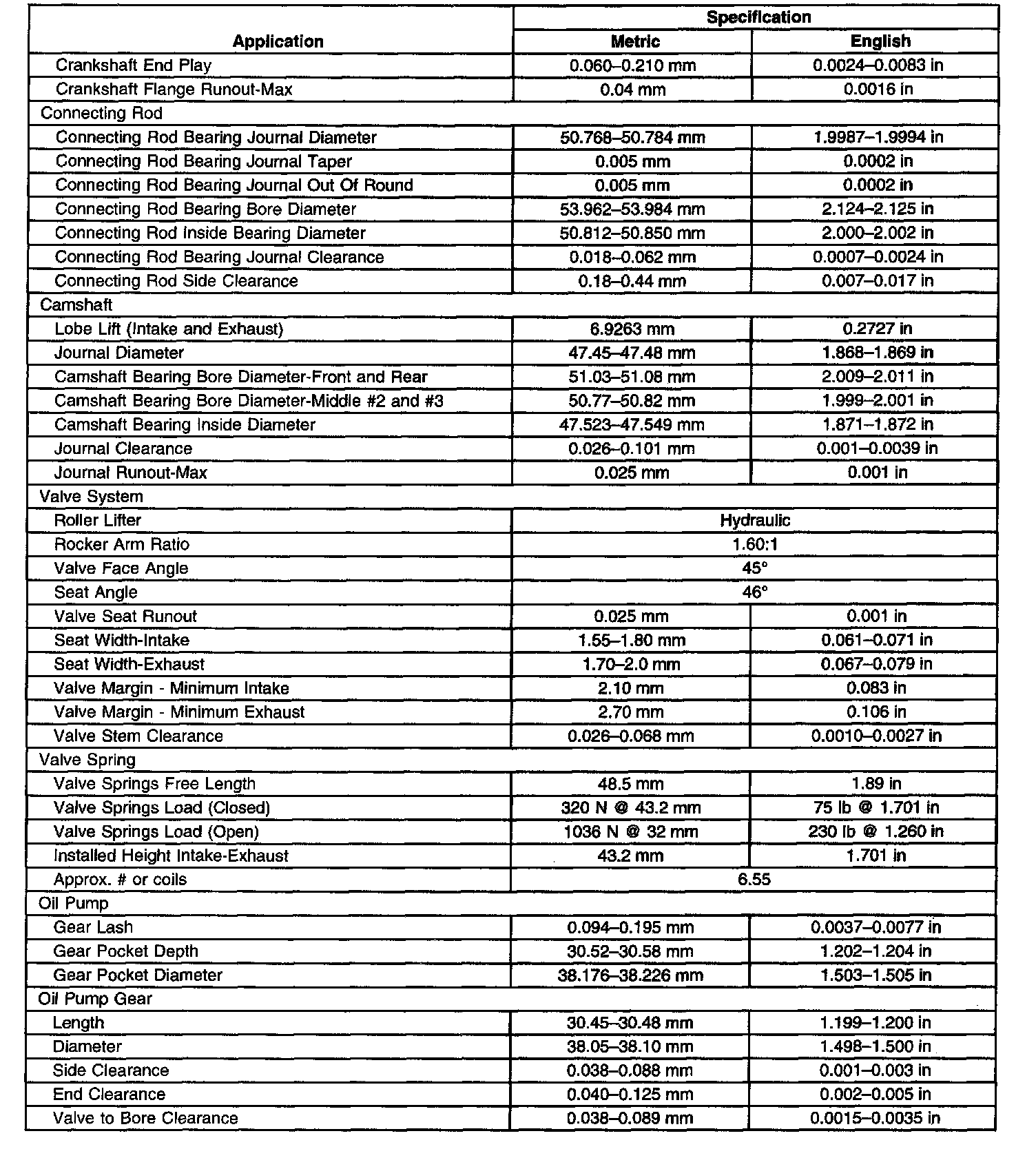 Engine Mechanical Specifications