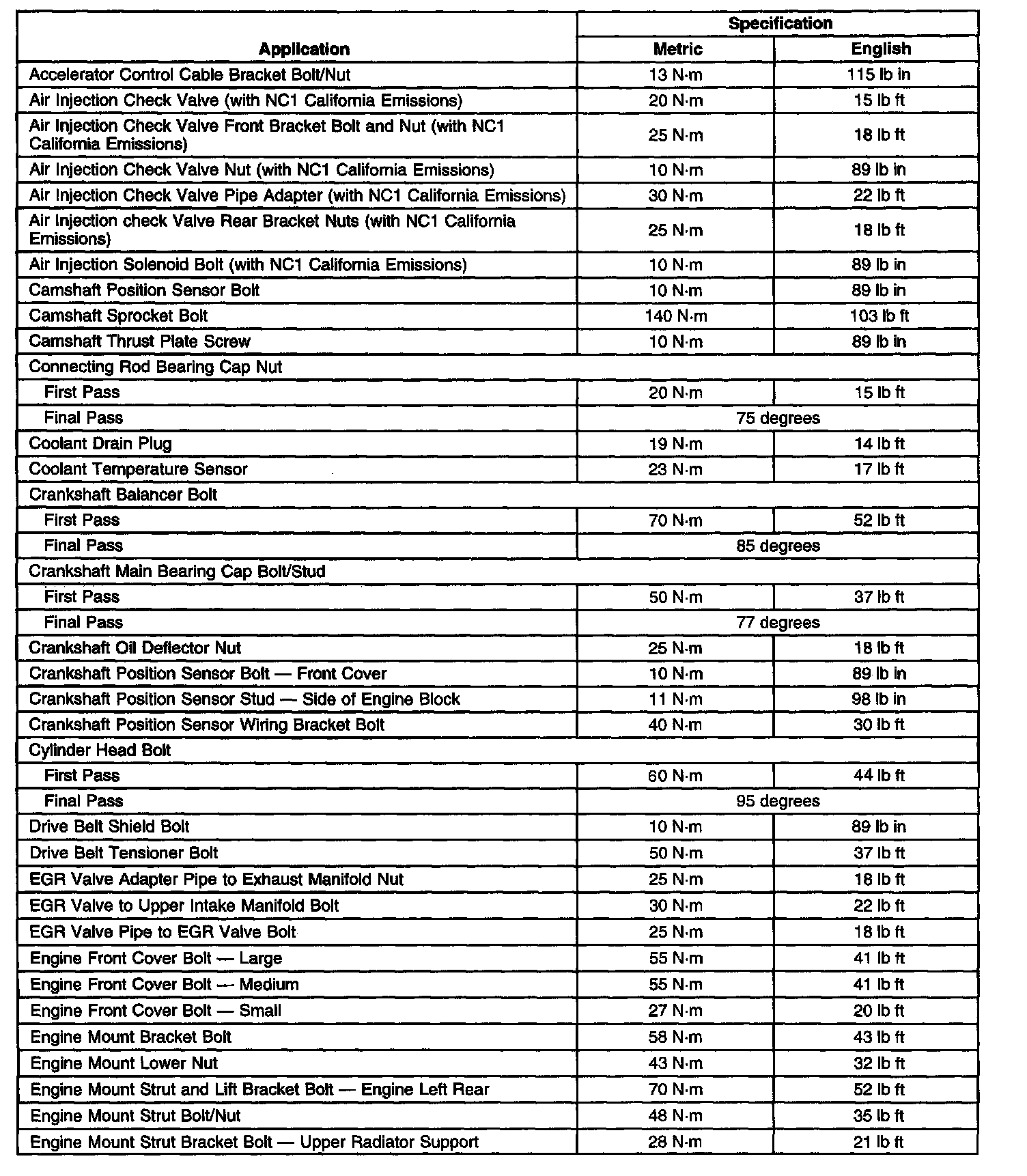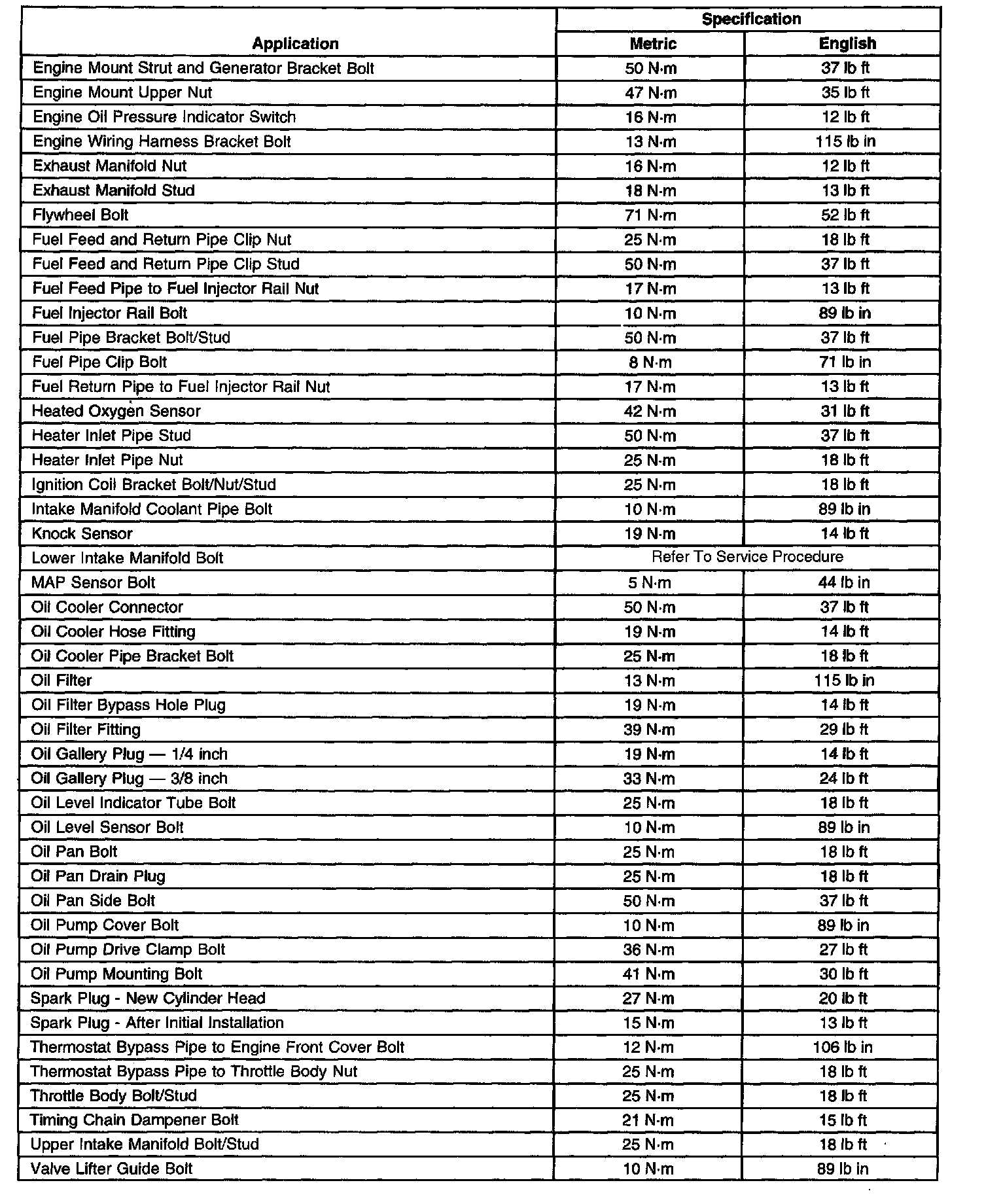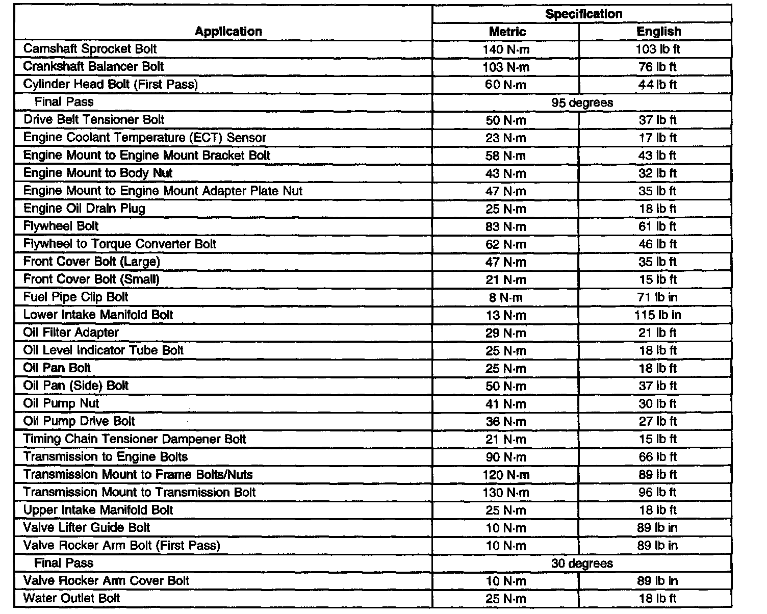 Fastener Tightening Specifications