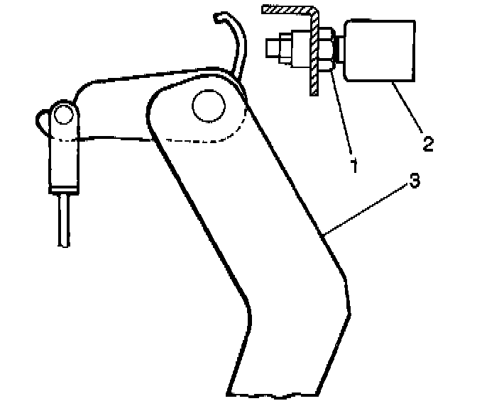4. Depress the clutch pedal (2) to the floor (3). Return the clutch pedal 15 - 30 mm (0.6 - 1.2 inch) from the floor.