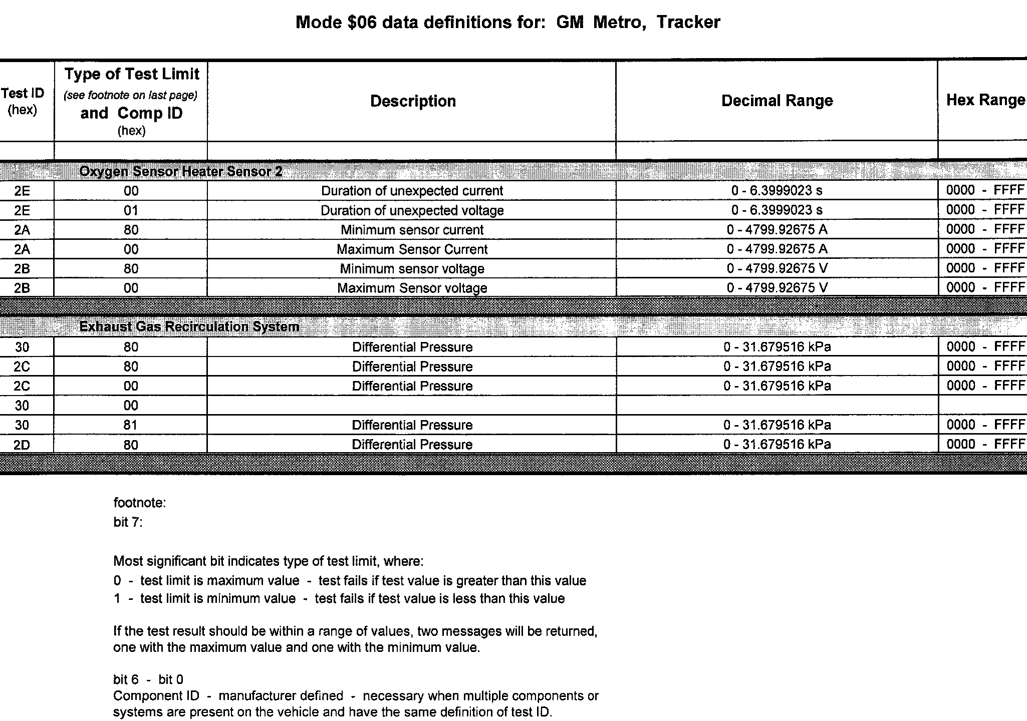 1999-2004 Chevrolet Metro/Tracker Mode 6 Data Description Page 2: