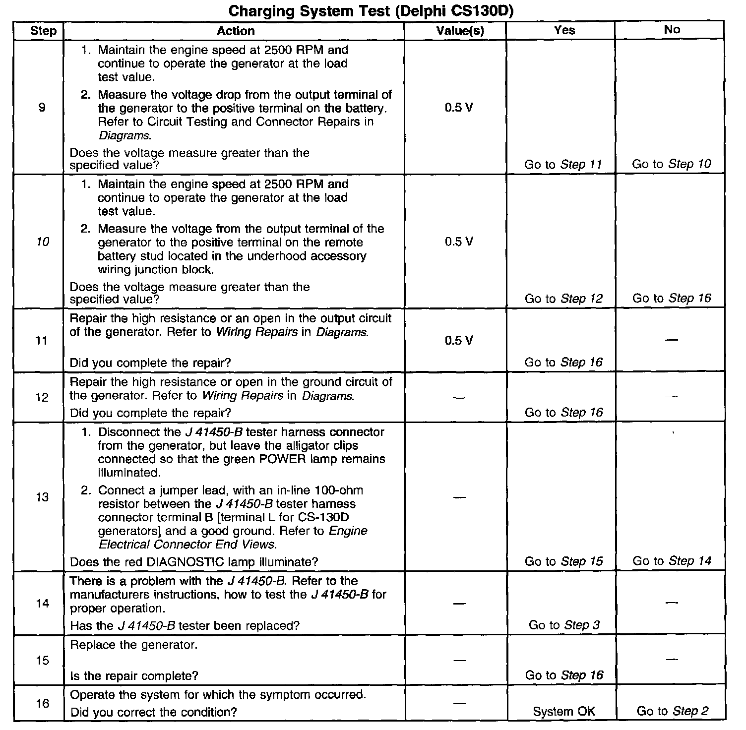 10. If the test has shown the generator to be OK, however the condition remains, test the PCM or its control circuit(s) to the generator.
