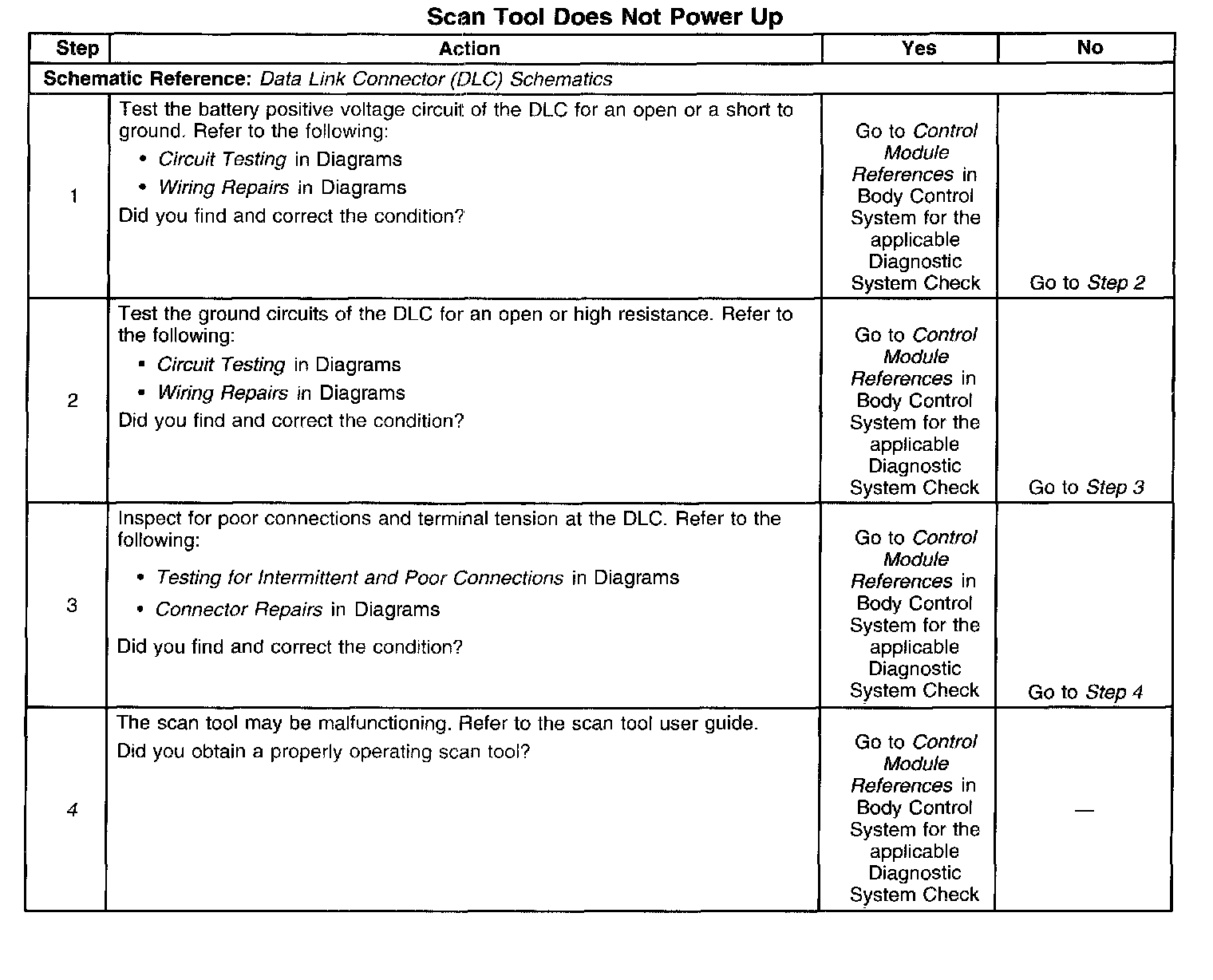 4. If the battery positive voltage and ground circuits of the DLC are functioning properly. The malfunction must be due to the scan tool.