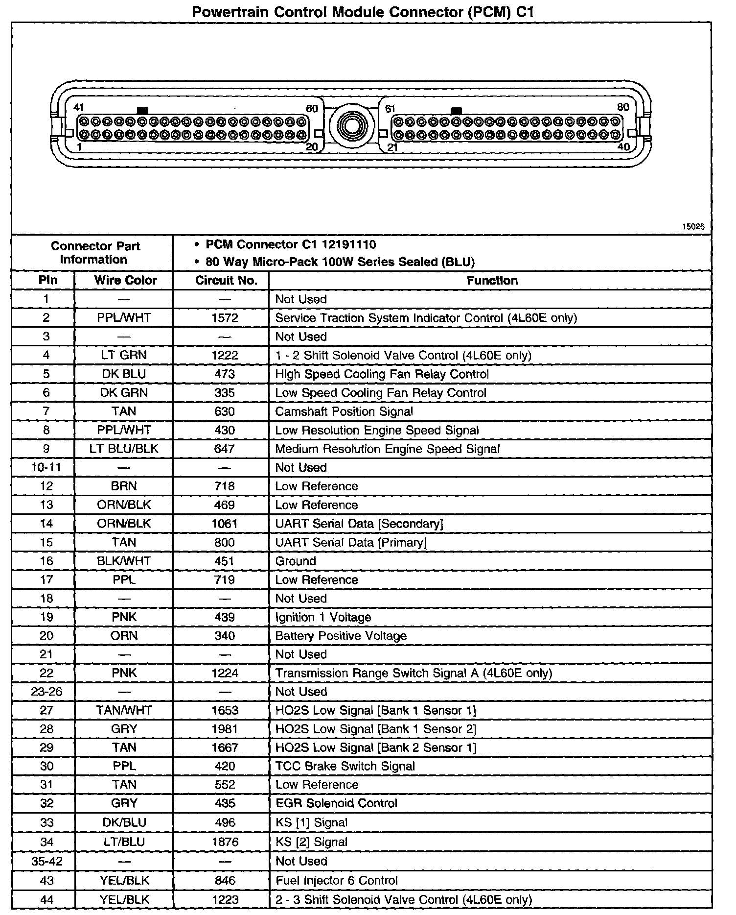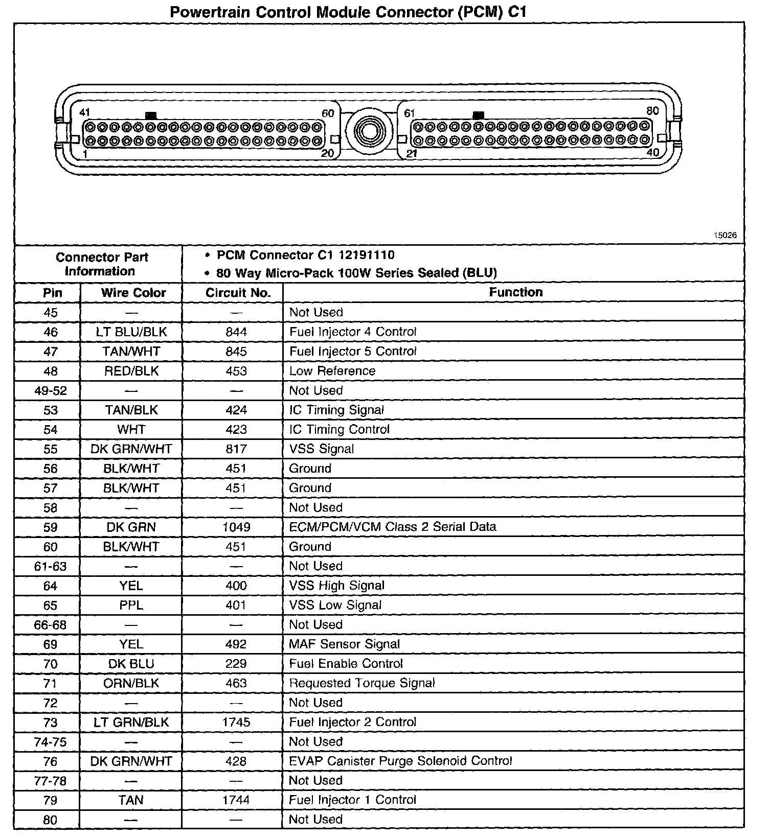 Powertrain Control Module Connector (PCM) C1 Part 1: