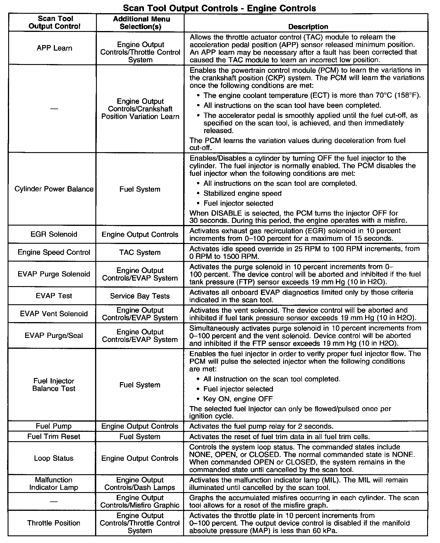 Scan Tool Output Controls - Engine Controls: