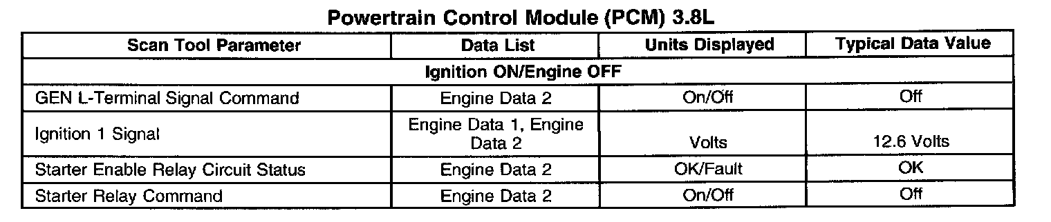 Scan Tool Data List - Powertrain Control Module (PCM)