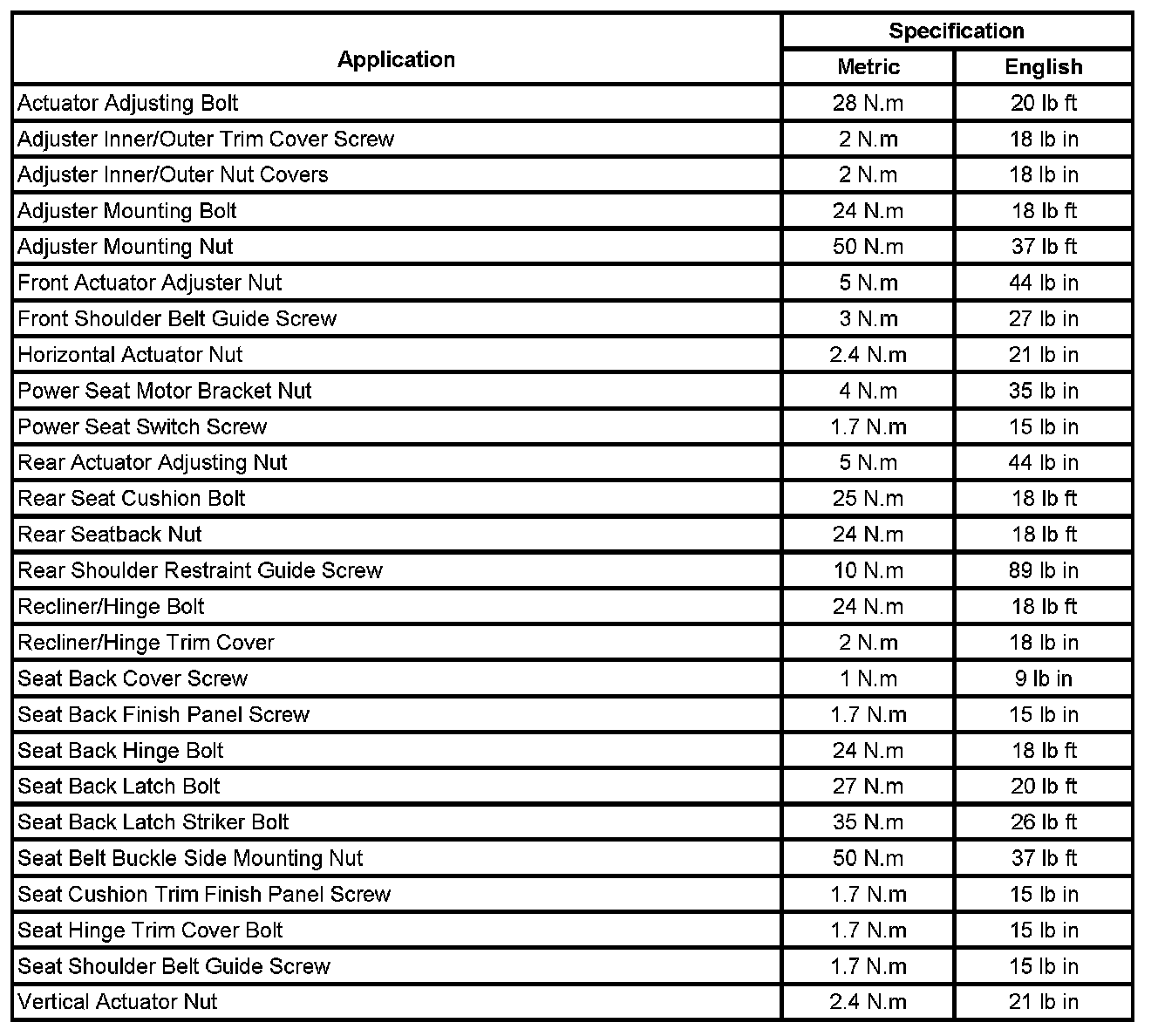 Fastener Tightening Specifications