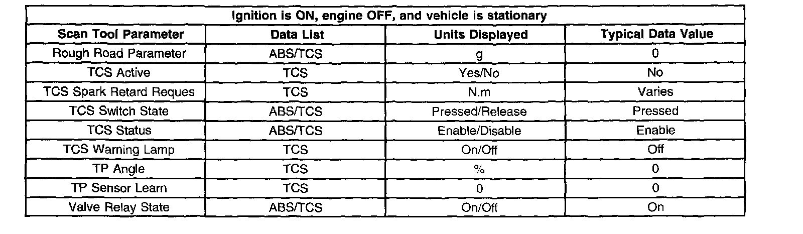 The Typical Data Values are obtained from a properly operating vehicle under the conditions specified in the first row of the Scan Tool Data List table. Comparison of the parameter values from the suspect vehicle with the Typical Data Values may reveal the source of the customer concern. The ID Information menu is located on the EBCM main screen.