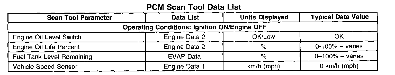 PCM Scan Tool Data List:
