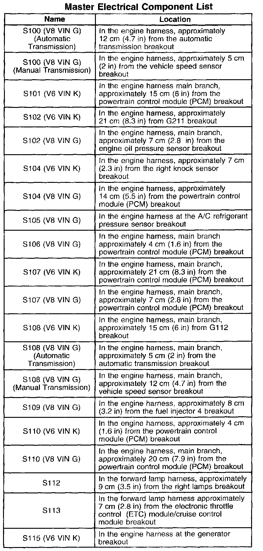 S100 (V8 VIN G) (Automatic Transmission) - S115 (V6 VIN K):