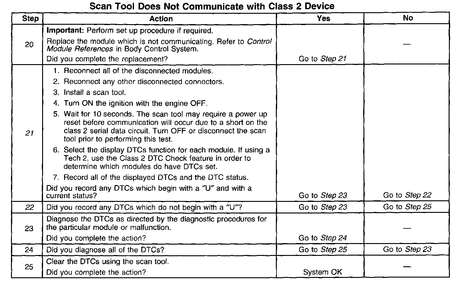 2. A partial malfunction in the class 2 serial data circuit uses a different procedure from a total malfunction of the class 2 serial data circuit.