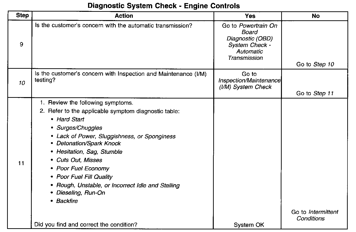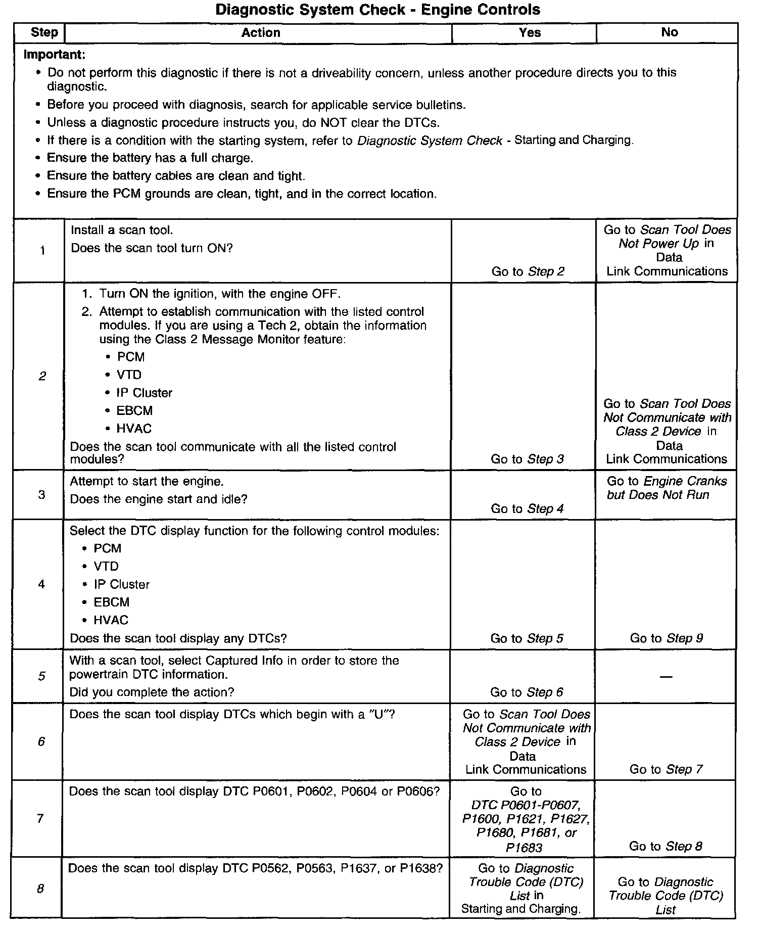DESCRIPTIONThe Diagnostic System Check-Computers and Controls Systems is an organized approach to identifying a condition that is created by a malfunction in the powertrain control system. The Diagnostic System Check must be the starting point for any driveability concern. The Diagnostic System Check directs the service technician to the next logical step in order to diagnose the concern. Understanding and correctly using the diagnostic table reduces diagnostic time, and prevents the replacement of good parts.