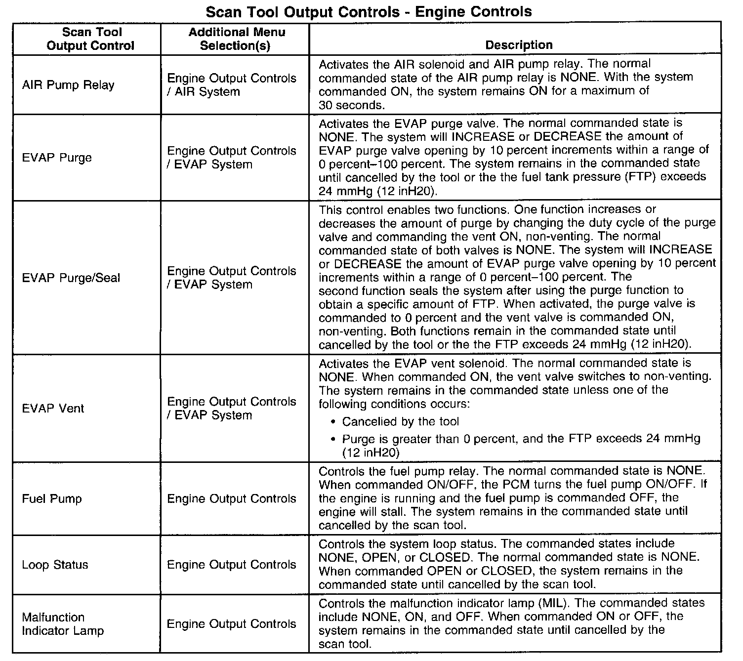 Scan Tool Output Controls-Engine Controls: