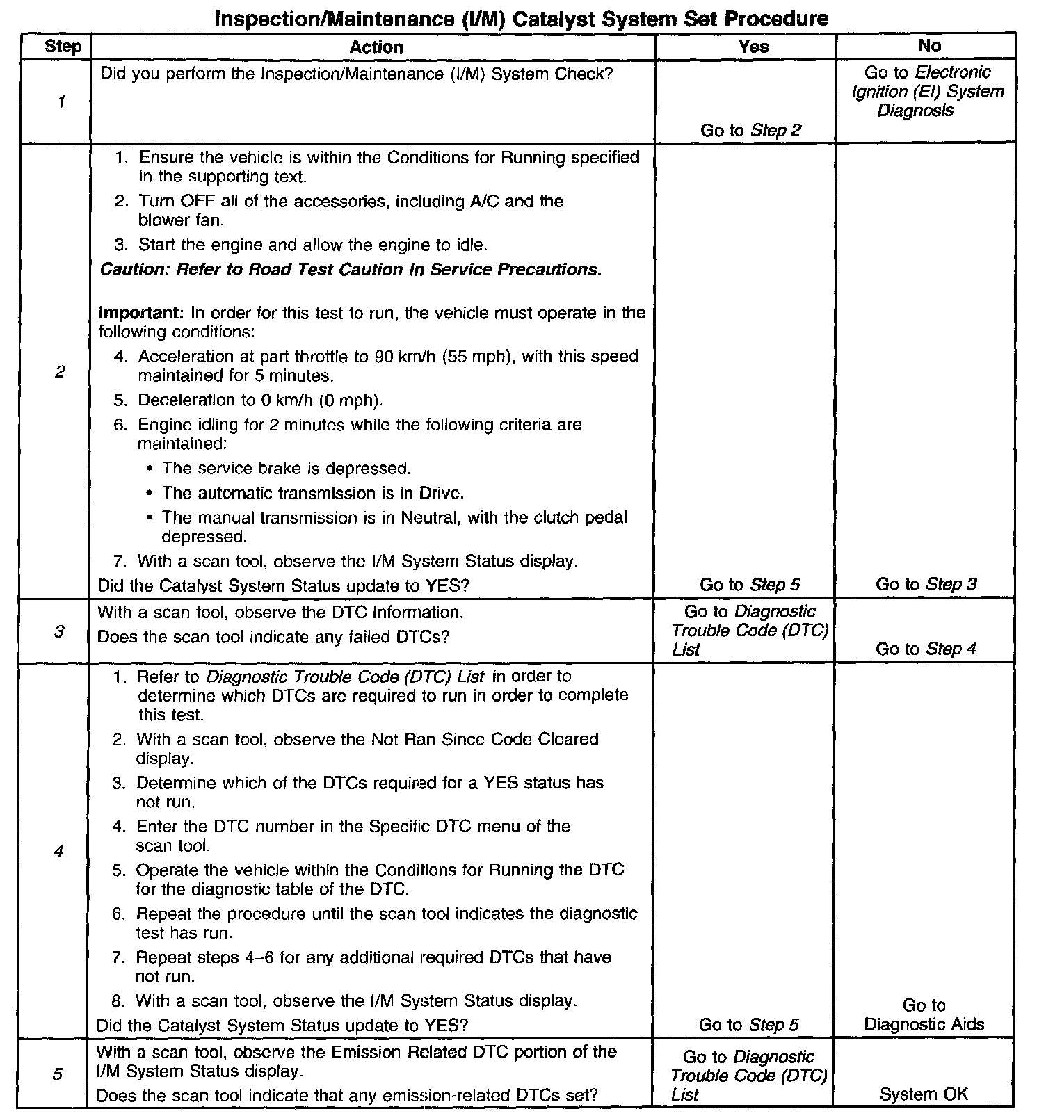 3. This step is to identify a first failure of a type B DTC. A DTC only appears on the I/M System Status display when the DTC becomes a MIL-illuminating DTC. This occurs on the second failure of a type B DTC. A first failure of a type B DTC will not allow the I/M System Status to update to YES. Refer to Diagnostic Aids.