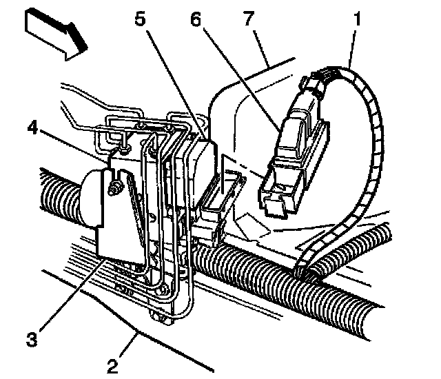 6. Connect the EBCM harness connector (6). Push in the lock tab.