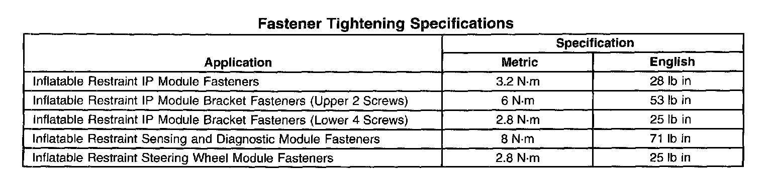 Fastener Tightening Specifications: