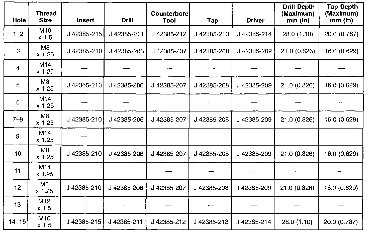 Thread Repair Specifications