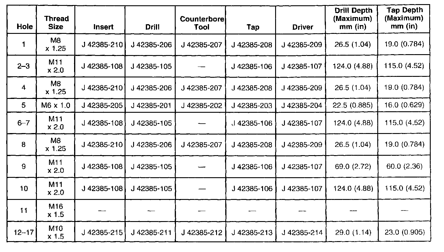Thread Repair Specifications