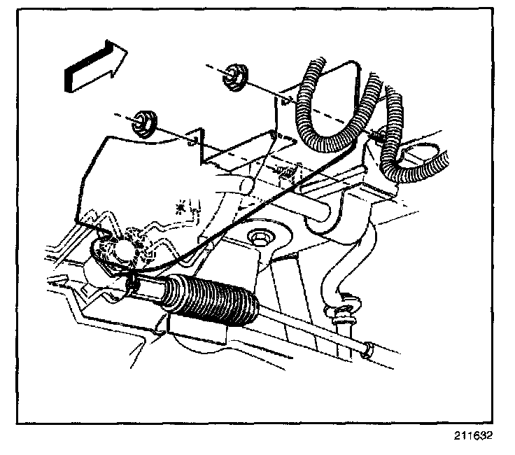 1. Remove the generator splash shield from the tie strap on the steering rack.