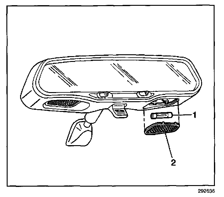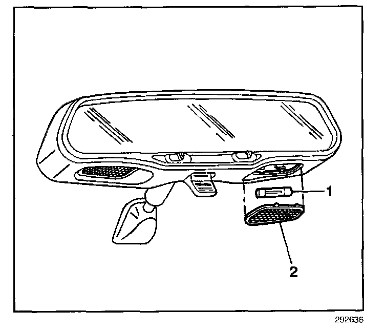 REMOVAL PROCEDURE1. Using a small flat-bladed tool, carefully pry at the rear edge, furthest from the windshield, of the lamp lens (2) to release the retaining tabs, then remove the lens from the rearview mirror.