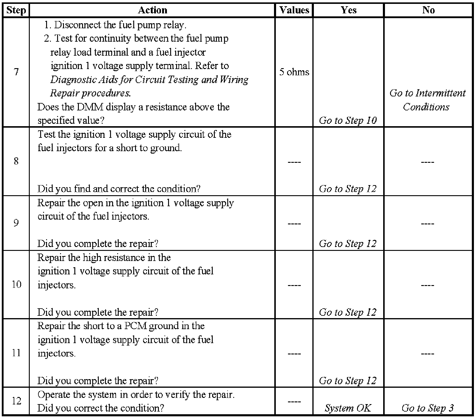Fuel Injector Circuit Diagnosis - Steps 7-12: