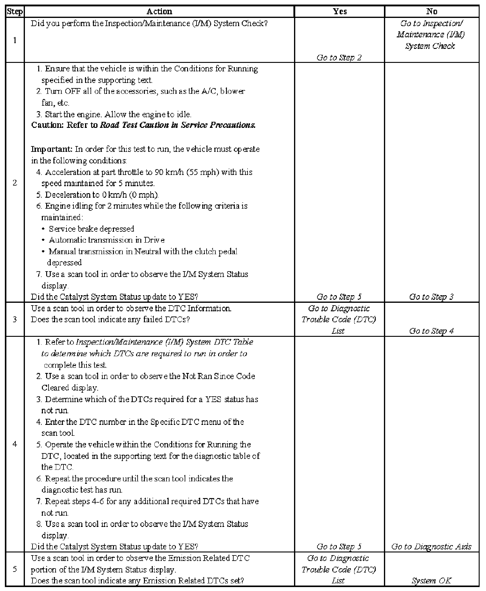5. The I/M System Status only verifies whether a diagnostic has run, not the outcome of the test. If any Emission Related DTC sets after the tests are complete, the DTC will require diagnosis.