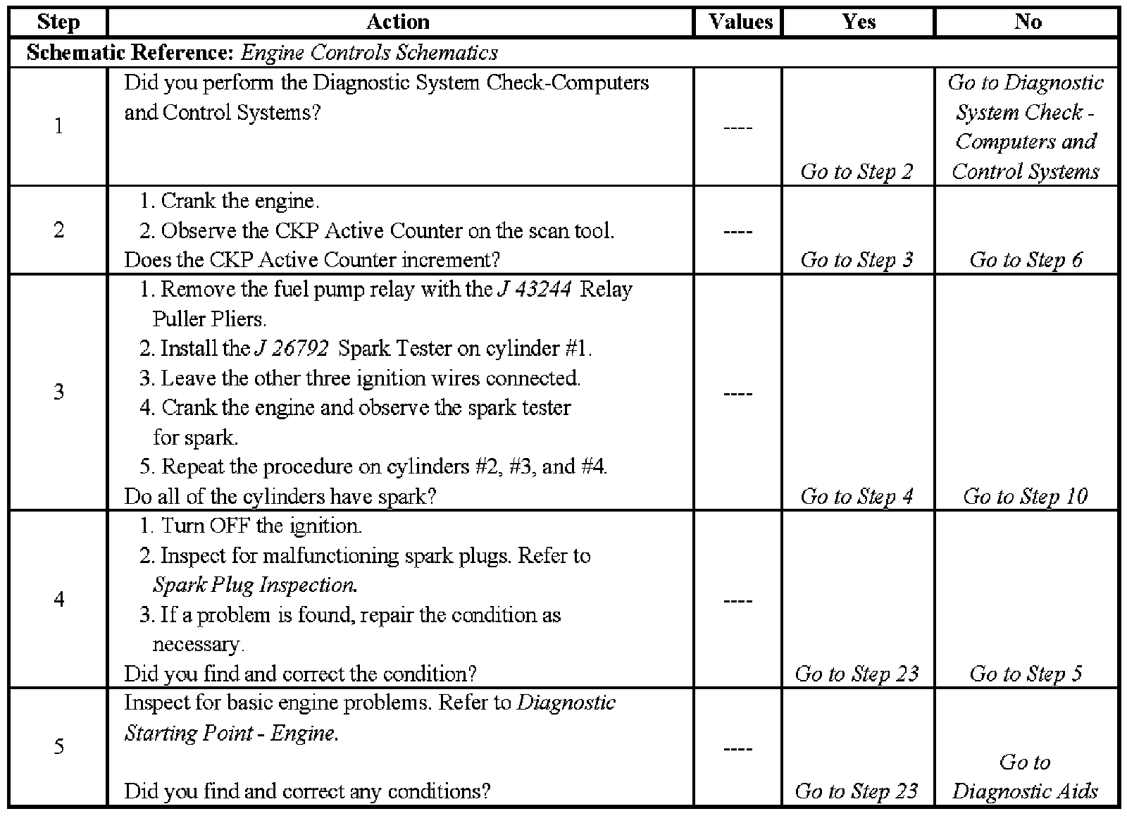 Electronic Ignition (EI) System Diagnosis - Steps 1-5: