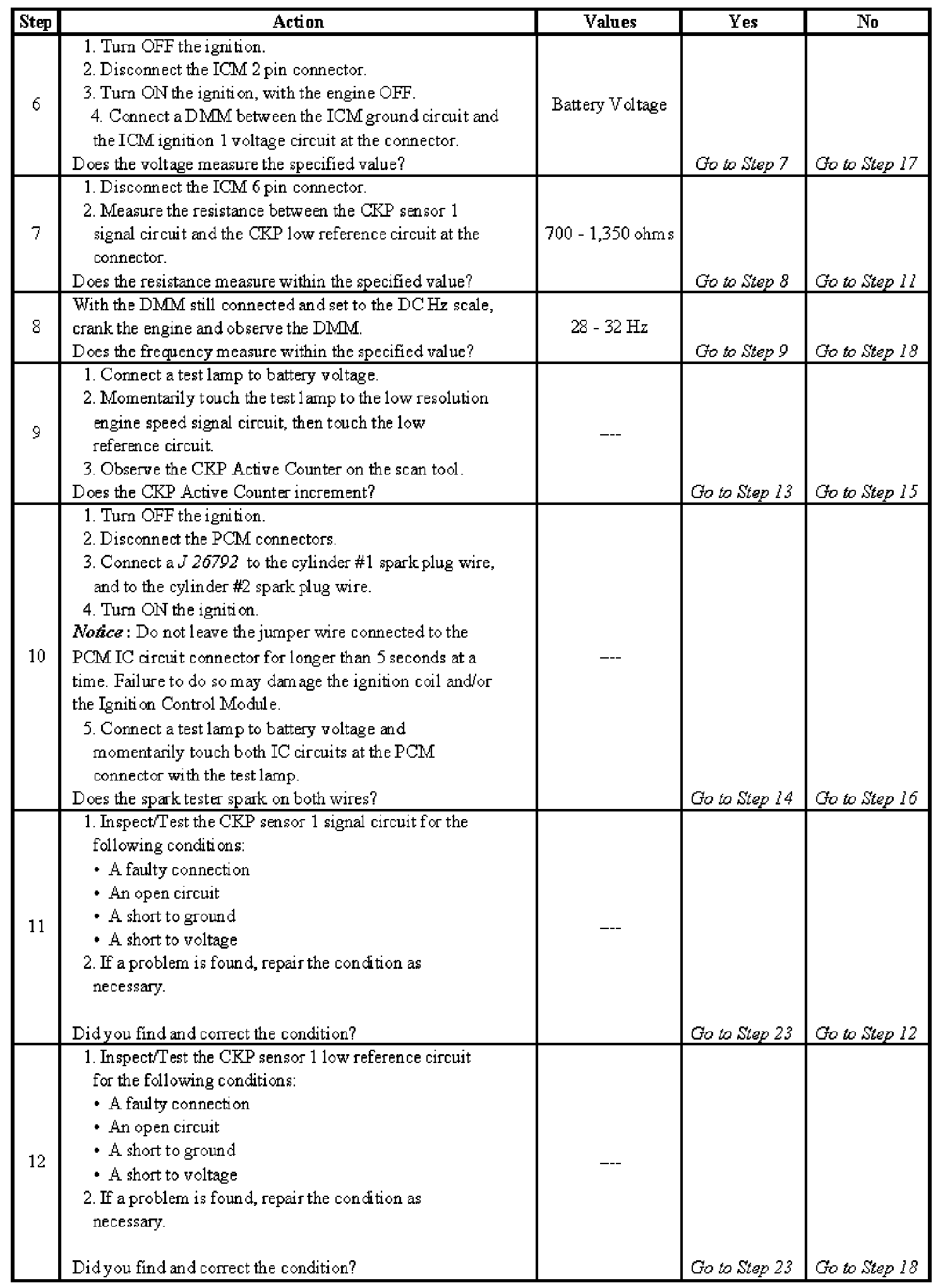 Electronic Ignition (EI) System Diagnosis - Steps 6-12: