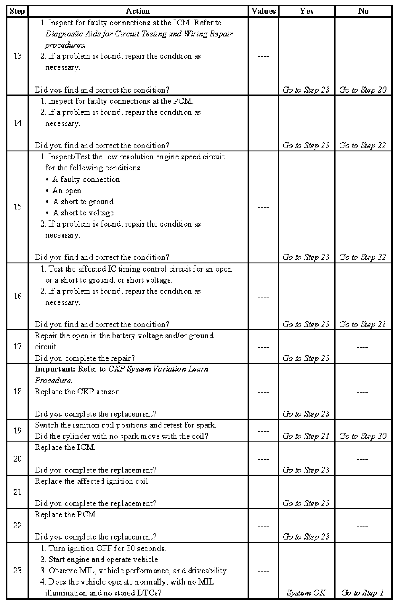 Electronic Ignition (EI) System Diagnosis - Steps 13-23: