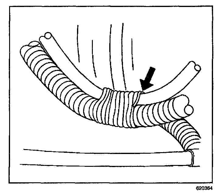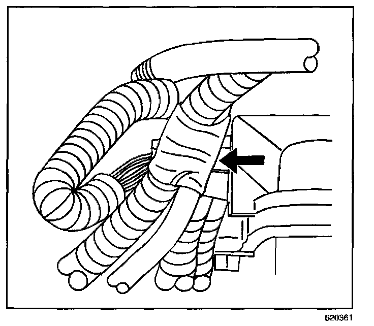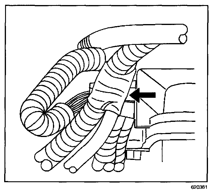 6. Cut the tape holding the 2 cables together at the retainer on the battery tray.