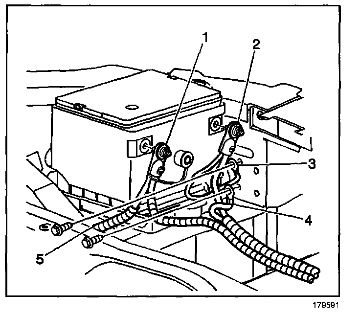 Tighten the battery hold down retainer bolt to 18 N.m (13 lb ft).