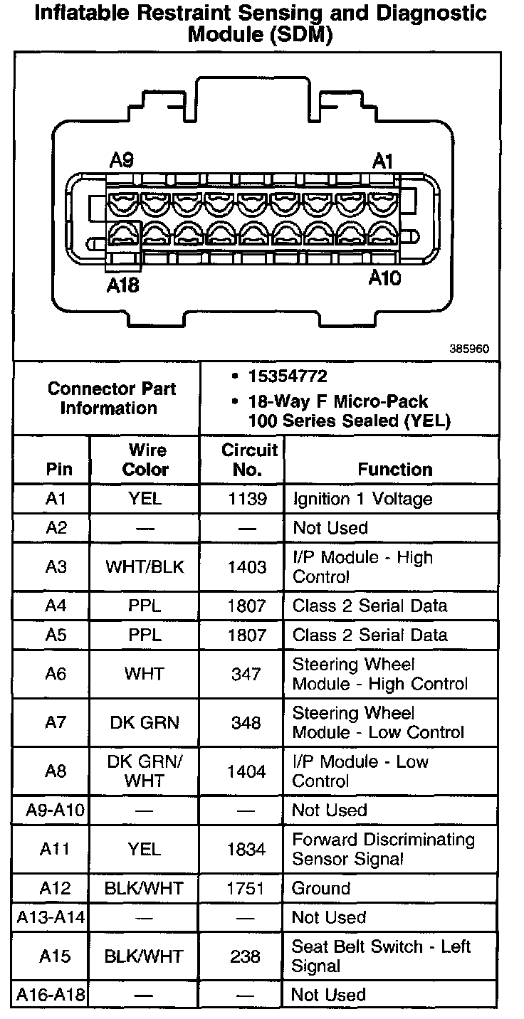 Inflatable Restraint Sensing And Diagnostic Module (SDM):