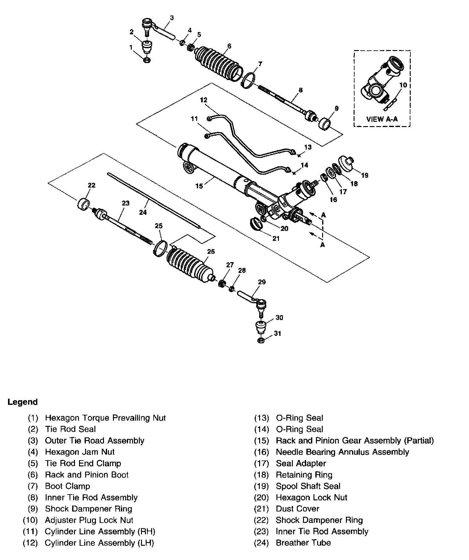 Power Steering Gear Disassembled View (Rack and Pinion)