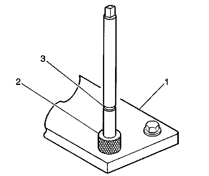 3. Install the fixture plate, bolt, and bushing, onto the engine block.