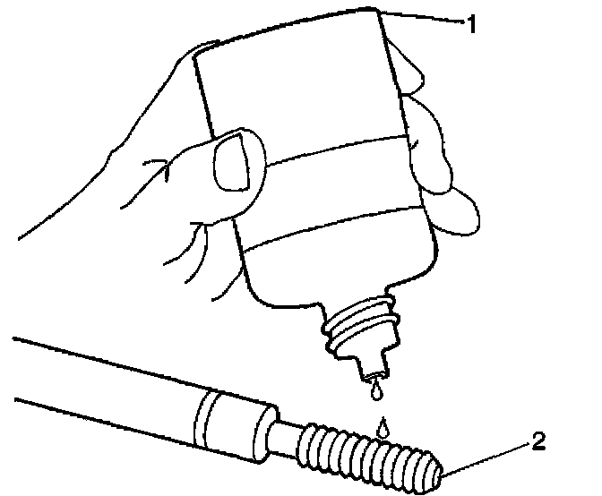13. Apply threadlock Loctite- 277, J 42385-109 (1), or equivalent to the insert OD threads (2).
