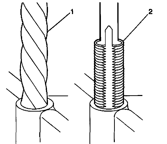 Important: The use of a cutting type fluid GM P/N 1052864 (Canadian P/N 992881), WD 40(R), or equivalent, is recommended when performing the drilling, counterboring, and tapping procedures.