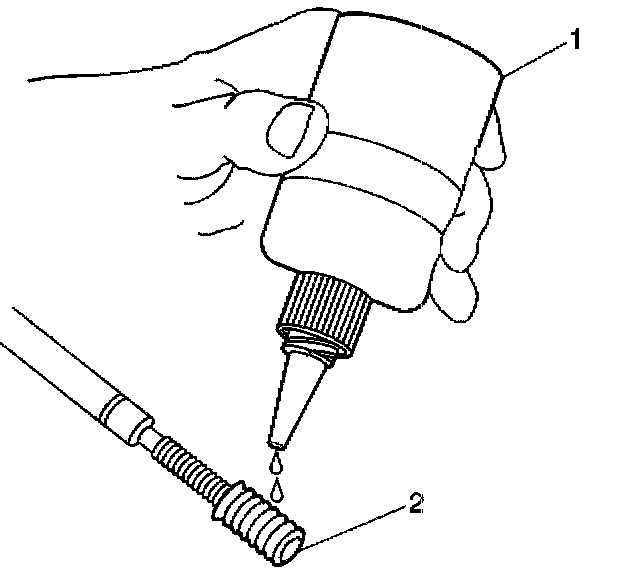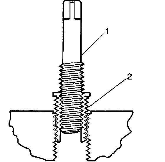 11. Apply threadlock LOCTITE (TM) 277, J 42385-109 (1), or equivalent to the insert OD threads (2).