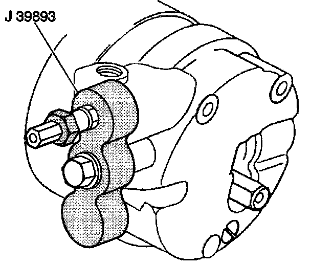 1. With the sealing washers in place, install the J 39893 on the rear head of the compressor.