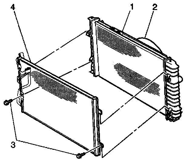 2. Install the condenser to radiator bolts (3).