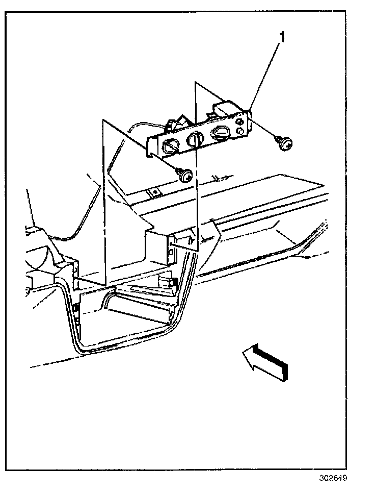 3. Pull the HVAC control assembly (1) away from the IP.